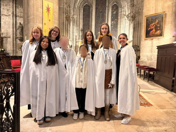 Nous sommes un groupe de 15 Marthe et Marie qui vous accompagnent pendant les messes et les jours de solennité. Nous sommes formées par un prêtre de Louviers. Pour devenir Marthe et Marie c’est très simple : il faut être baptisée car la cape que nous portons de couleur blanche nous rappelle notre baptême. Lors d’une messe le prêtre vous demande votre engagement devant vous, les paroissiens. Nous vous remettons par la suite votre cape ainsi que votre médaillon.