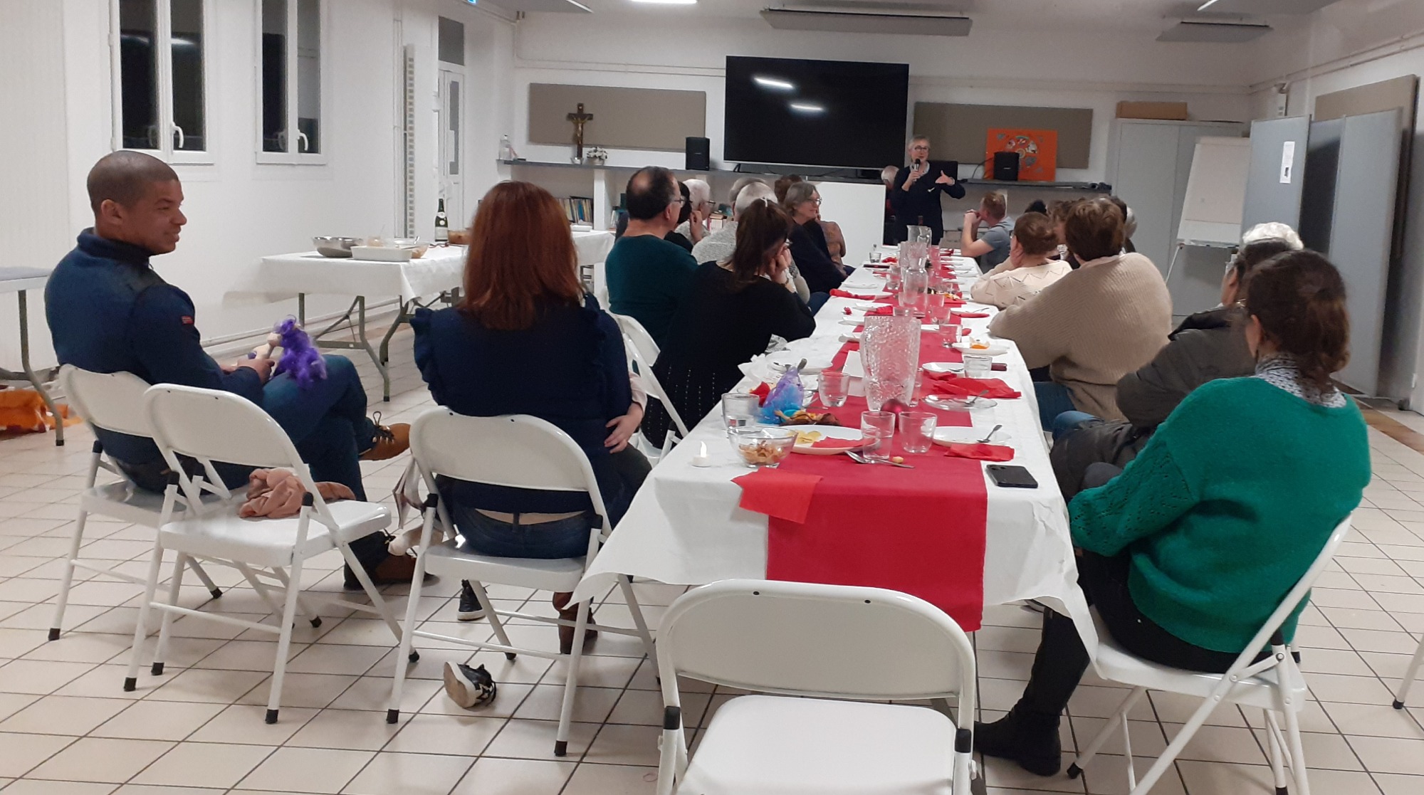 Les participants ont invité toutes les petites mains qui ont cuisiné des plats durant les 9 soirées du parcours ALPHA écoulé depuis septembre, ainsi que les personnes qui ont prié pour eux durant ces soirées. Ils ont aussi invité des proches pour leur faire découvrir cette fabuleuse aventure.