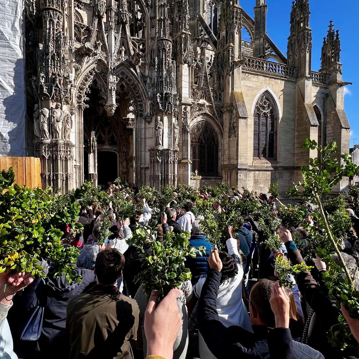 Les rameaux s’élèvent dans les mains, légers et vivants, comme un signe de joie simple et partagée. En ce dimanche des Rameaux, nous entrons ensemble dans la Semaine Sainte en reprenant le geste de la foule qui accueillait Jésus à Jérusalem. Il y a dans l’air quelque chose de festif : des sourires, du soleil, des voix qui s’unissent. Chacun porte son rameau, humblement, comme un petit morceau d’espérance à bénir et à emporter chez soi.
