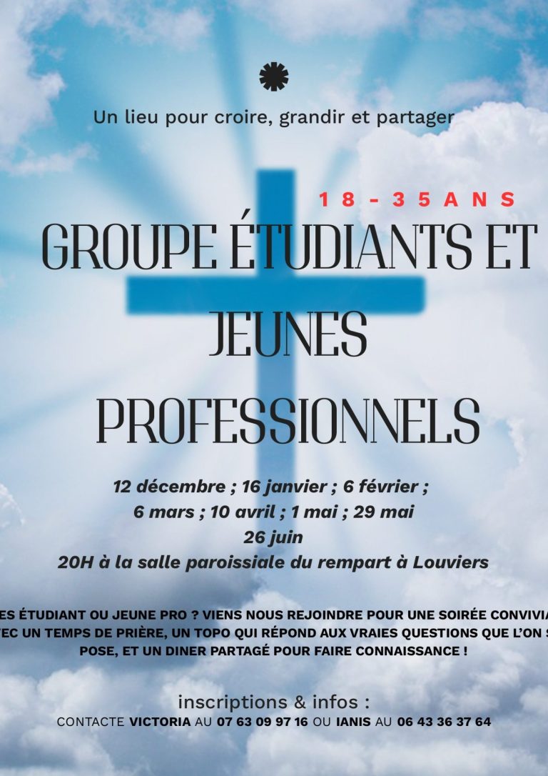 Un rendez-vous pour les 18-35 ans qui souhaitent partager, entretenir ou découvrir leur foi. (même si vous en avez 36 !)